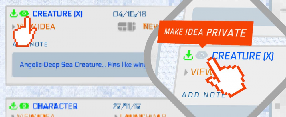 To make sure the ideas you generate are not visible in any feed, make it exclusive to your eyes only by checking off the eye icon.